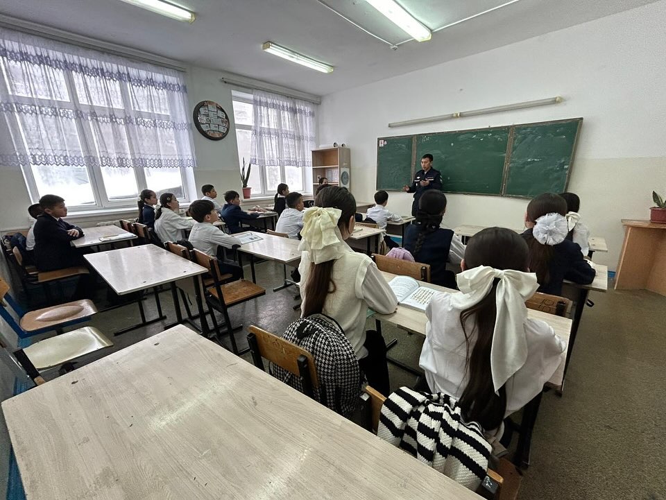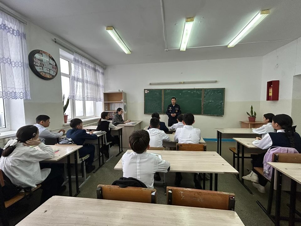 Жуалы ауданы ТЖБ аға инженері Жұманов Балқыбек. Оқушыларды қауіпсіздік дағдыларына үйрету. Оның ішінде өрт қауіпсіздігі, улы газдан сақтану, жер сілкінісі кезіндегі іс әрекеттері, мұз үстіндегі қауіпсіздік тақырыптарында.